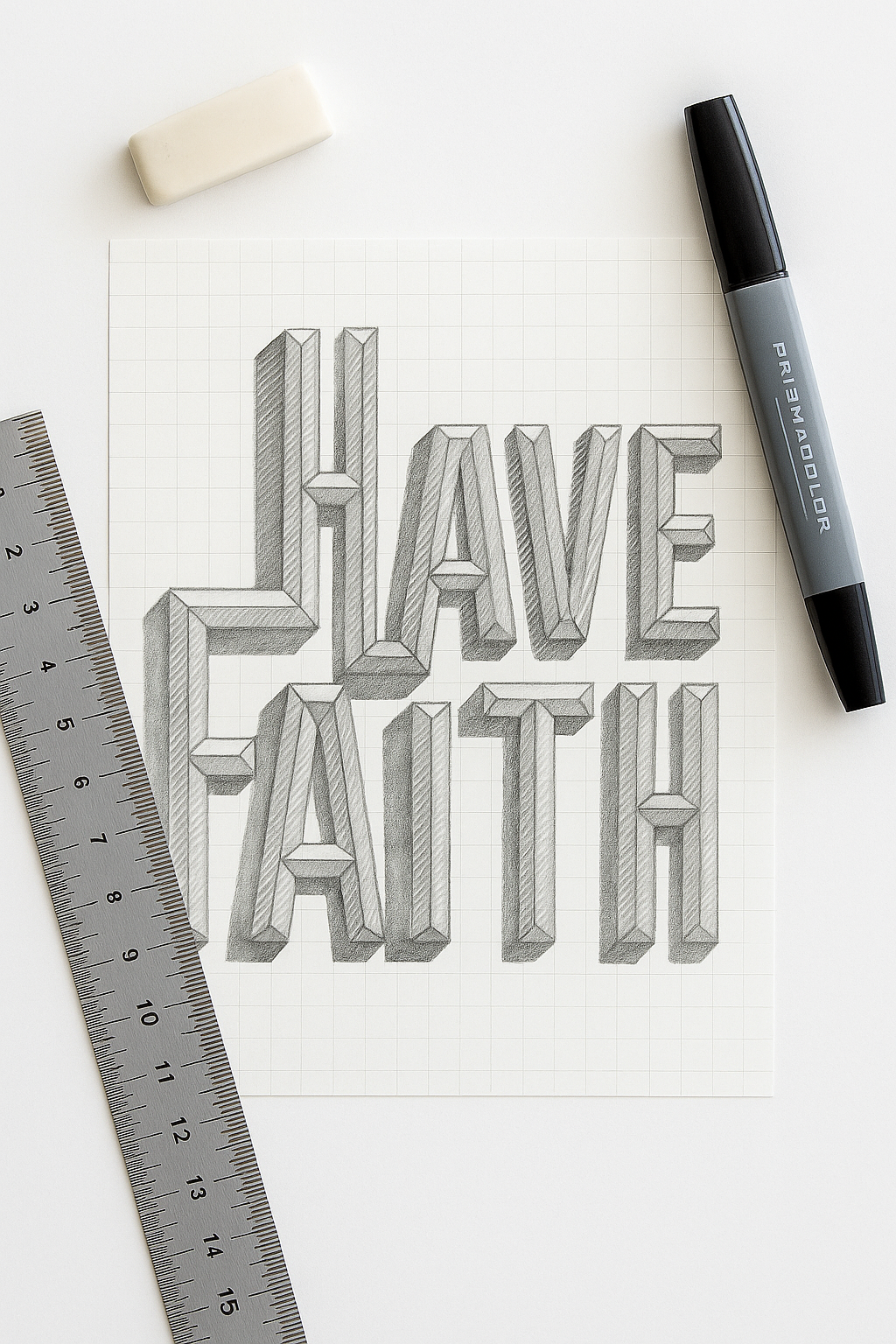 A little faith goes a long way, especially in design. Part of my Favorite Phrases hand-lettering series, this piece started as a quick sketch and was finished in Adobe Illustrator as a bright, dimensional reminder to keep going.
